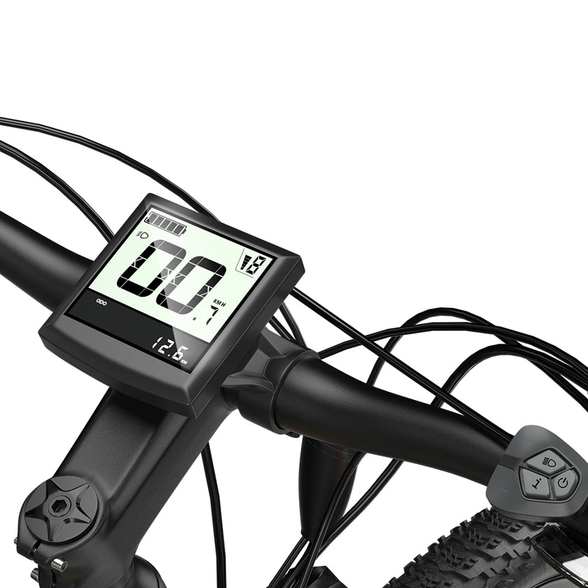 Intelligenter LCD-Bildschirm. Der Computer des Controllers liefert Ihnen mit nur einem Tastendruck alle Informationen, die Sie benötigen. Zusammen mit dem mechanischen Pedalsystem ist es vollständig programmierbar und ermöglicht eine vollständige Anpassung der Geschwindigkeitsoptionen und anderer Sicherheitseinstellungen. 0-5 PAS-Modus, wasserdicht IP65