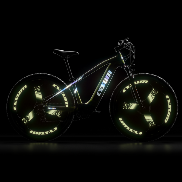 Der Rahmen und die Räder fluoreszieren nachts, sodass Sie nachts besser sichtbar sind.
